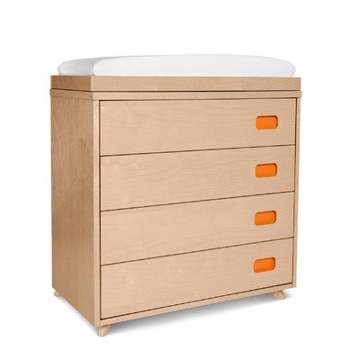 F5-2981-793 Changing Pad Not Included Features: -Solid birch wood and wood veneer.-Popsicle Orange painted interior.-Full extension ball bearing drawer slides.-Child safe anti-tipping brackets.-Removable changing table tray top (changing pad not included).-Available separately in Cool Blue and Lime Green. Color/Finish: -Cleans easily with damp rag (lightly wipe with furniture oil to maintain wood finish). Assembly Instructions: -Ships fully assembled (no assembly required).